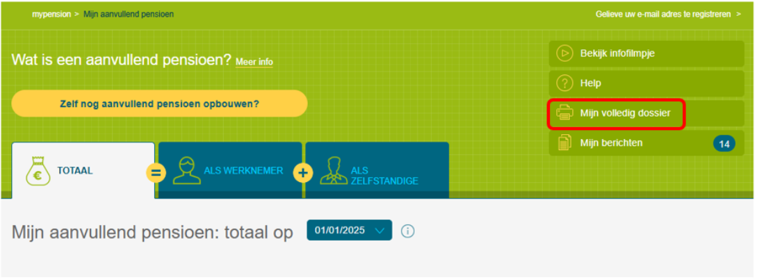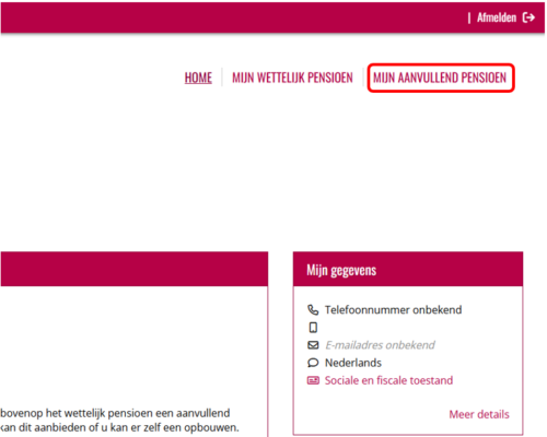 3 STAP 3: Klik in het beginscherm rechtsboven op 'mijn aanvullend pensioen'